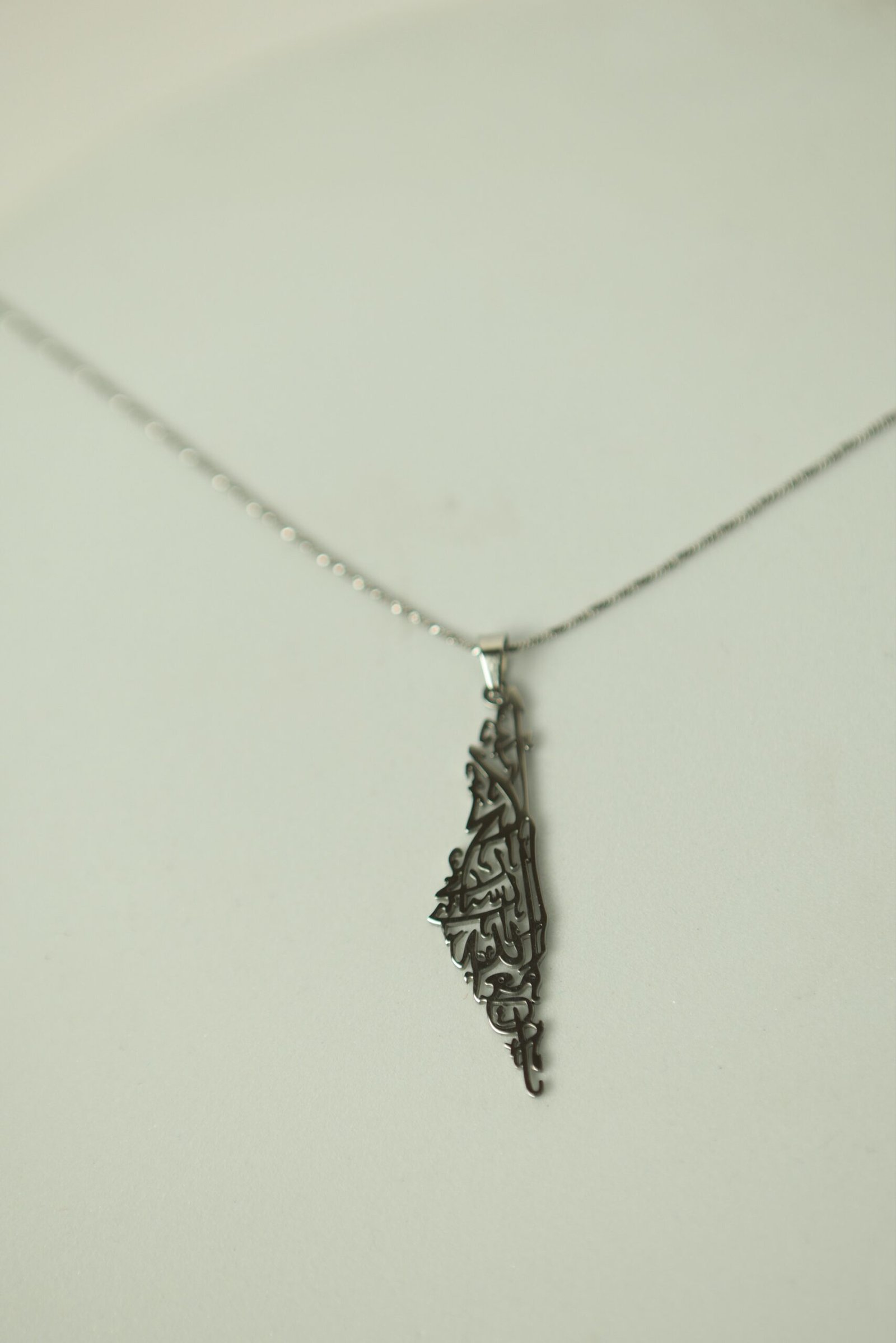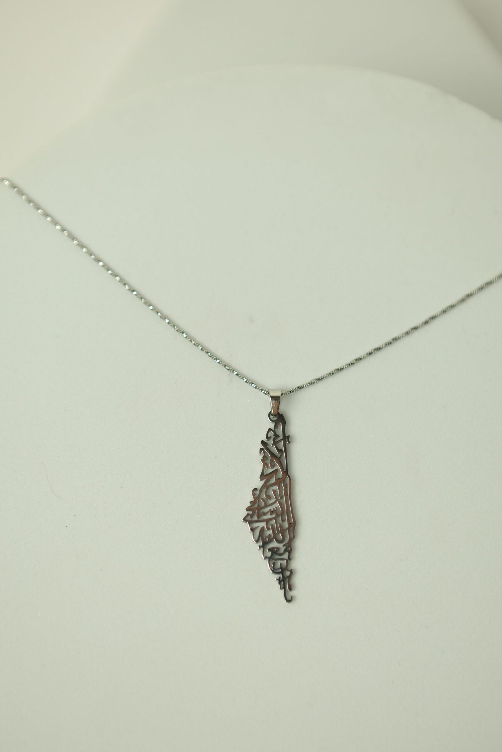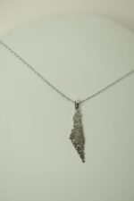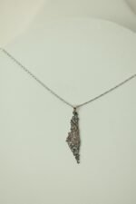 قلادة معدنية بشكل خريطة فلسطين.