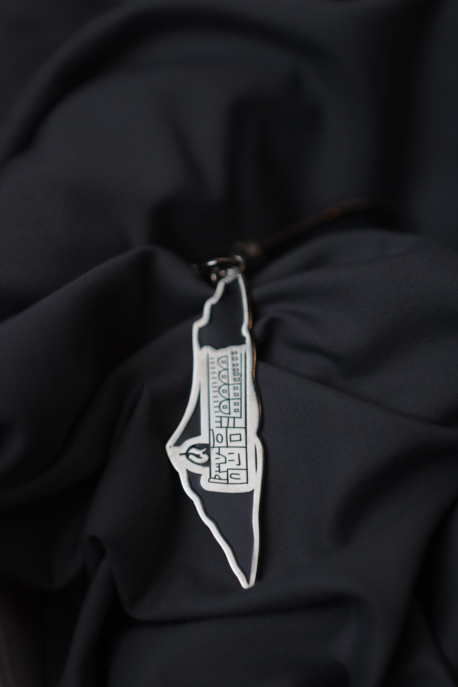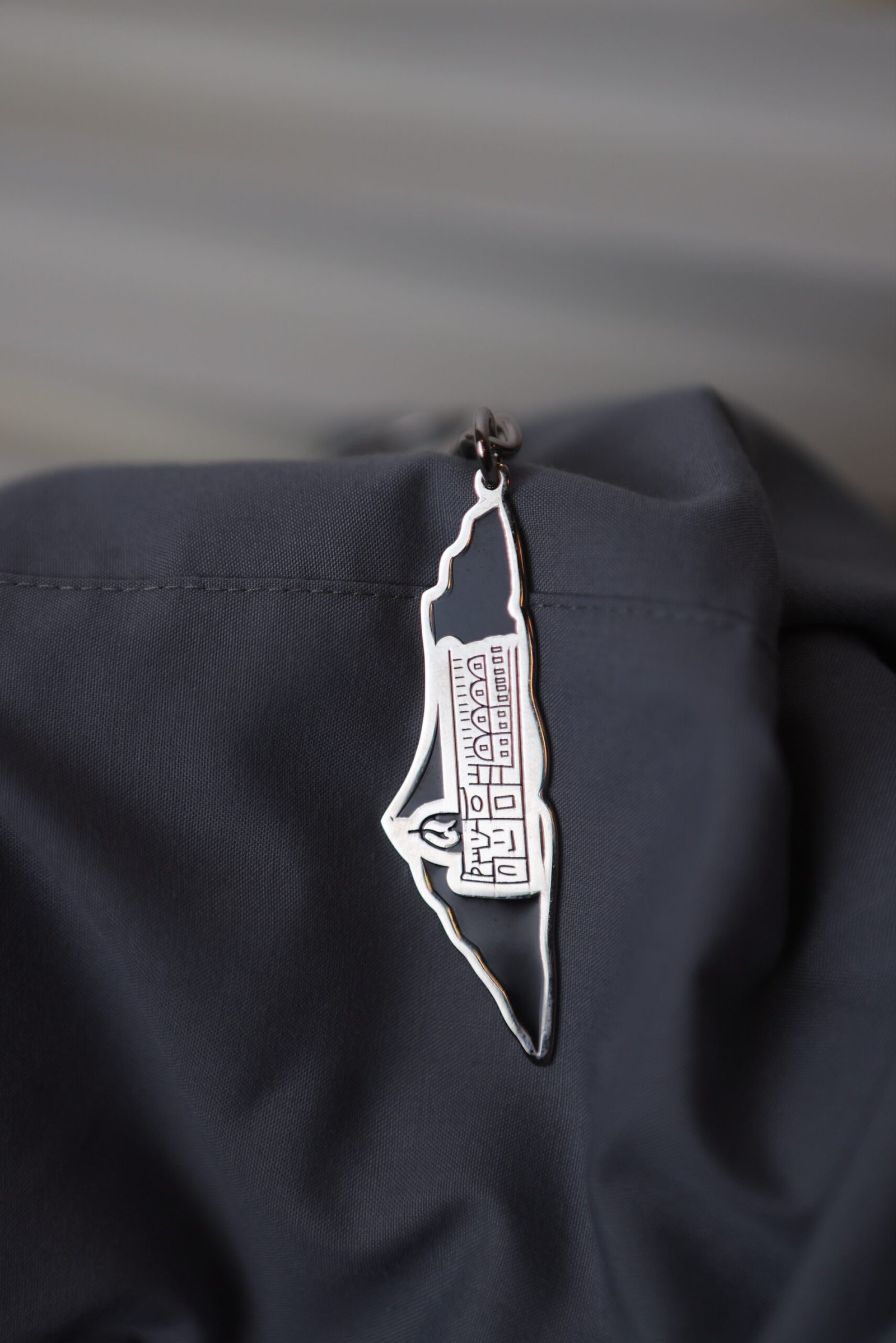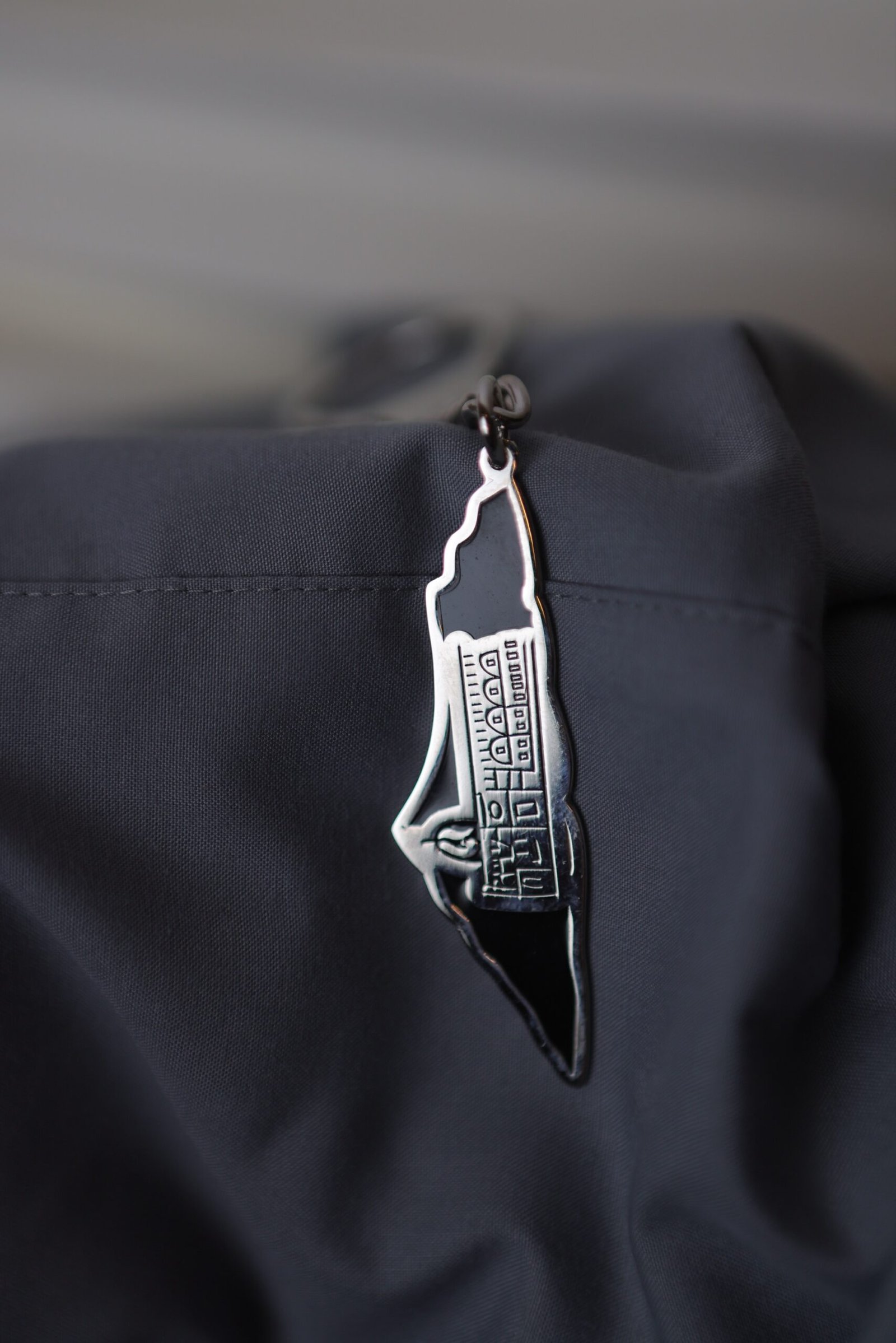 * ميدالية معدنية على شكل خريطة فلسطين *